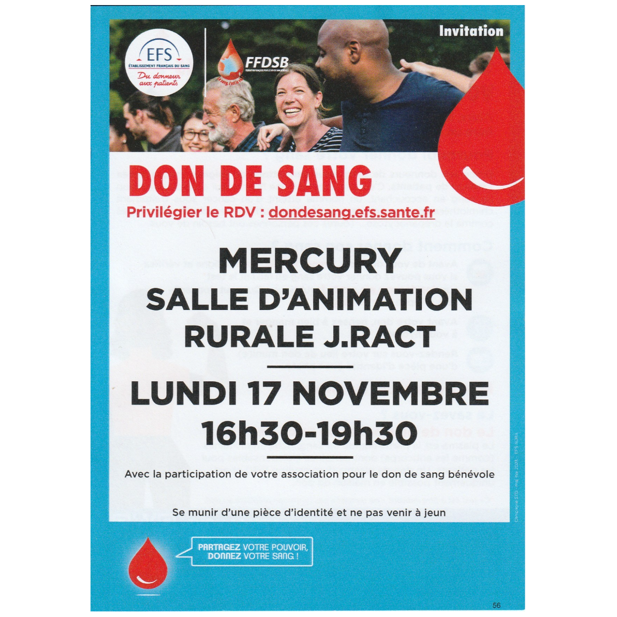 LE DON DE SANG - Lundi 17 novembre 2025 à MERCURY
